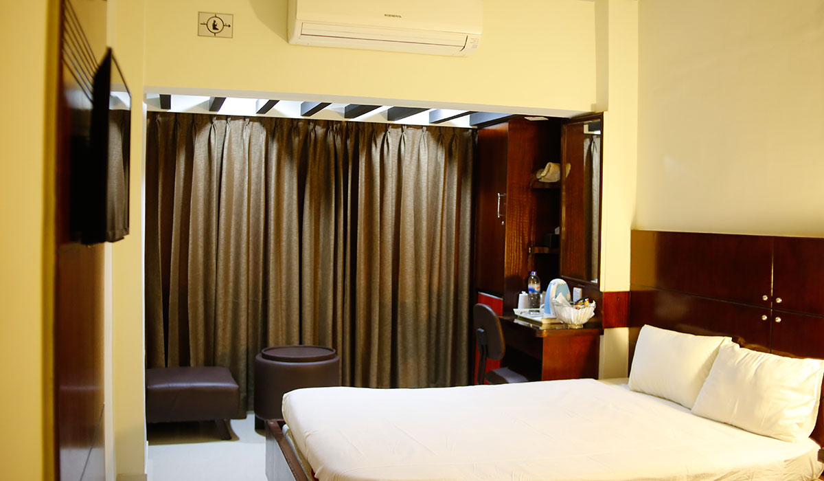 The room is south-faced at KDA Avenue. It is air-conditioned room with a couple bed and an extra single bed and also has other type with two single beds. Those room which has a couple bed and an extra single bed is suited for a smart family with a child (below 10 year will be count as child) with home environment or 3 persons who like to stay together (For that extra person charge will be 700/- BDT). Generally we offer two single beds for the twin (such as business and tour partners etc.) and its color and interior decoration has added its standard with the modern structural facilities. It may be suited for a smart family with a child with home environment.